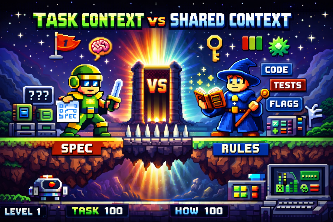 Shrinking task context does not mean writing vague tickets. It means you stop using tickets to carry institutional memory. You stop writing “make sure you add feature flags” or “remember to add metrics” or “please follow naming conventions” in every single prompt, PR, or story. Those are not task instructions. They are operating norms.