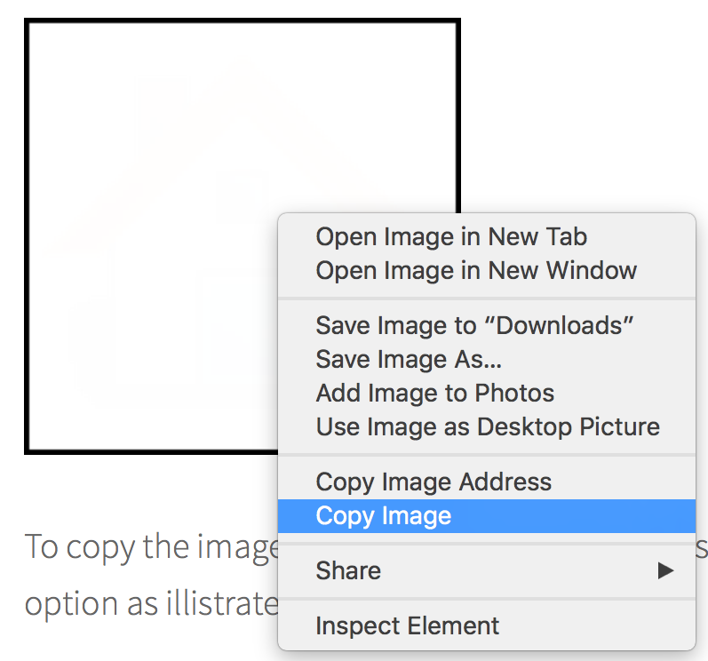 To copy the image just right click on Safari and select the Copy Image  option as illustrated below.